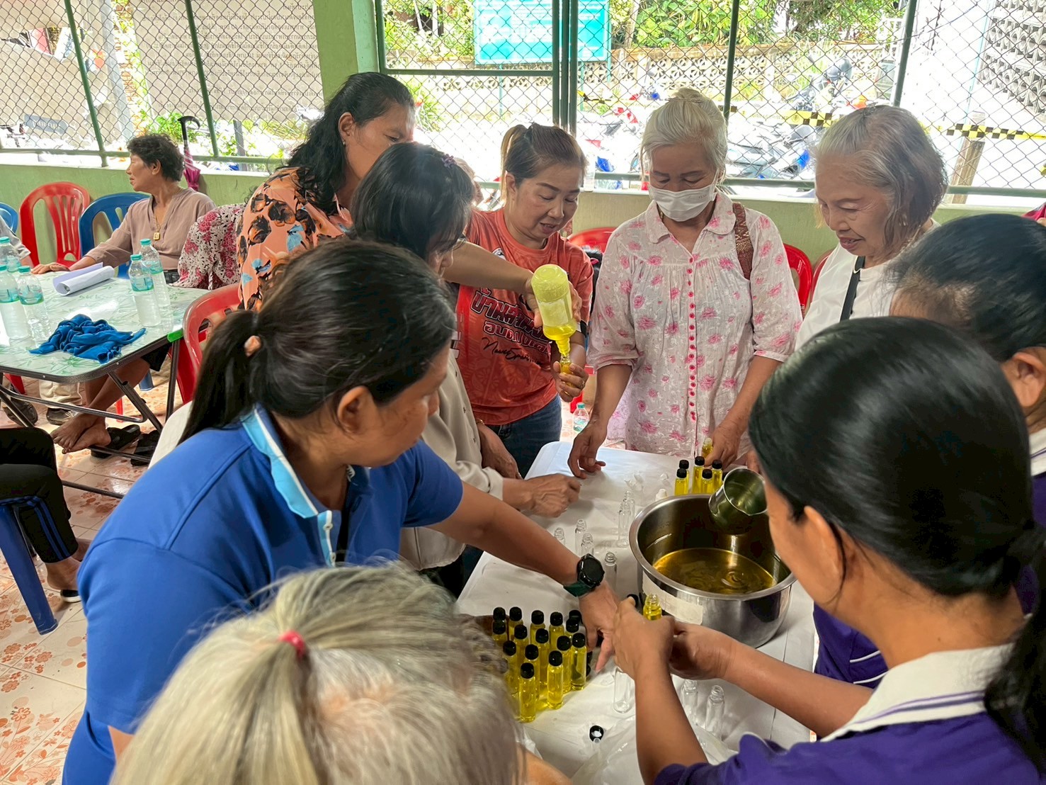 ได้จัดกิจกรรม ให้ผู้สูงอายุในพื้นที่ตำบลปงเตา ร่วมกิจกรรม ในการทำน้ำมันไพล ยาหม่อง